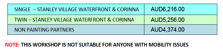 Today is at your leisure to be spent painting in and around Stanley, visiting the historic Highfield House (2k walk), revisiting some of the locations or developing the sketches you did yesterday in the Tarkine. You might like to meet, at the end of the day at the wine bar, which has tasty cheese platters and gourmet pizzas. (B,L)